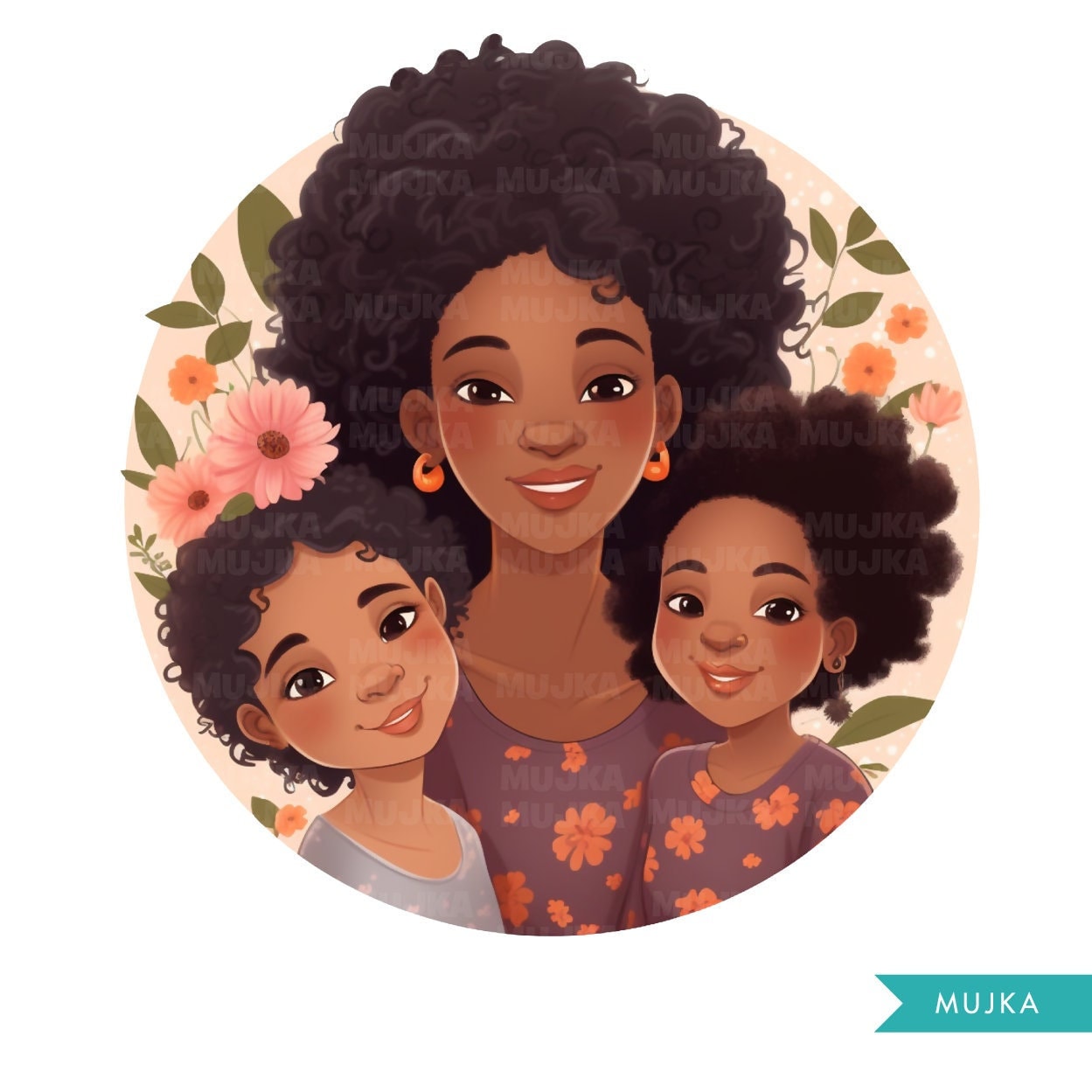 Mothers Day Png, Black Mother’s Day art, Mother and daughters