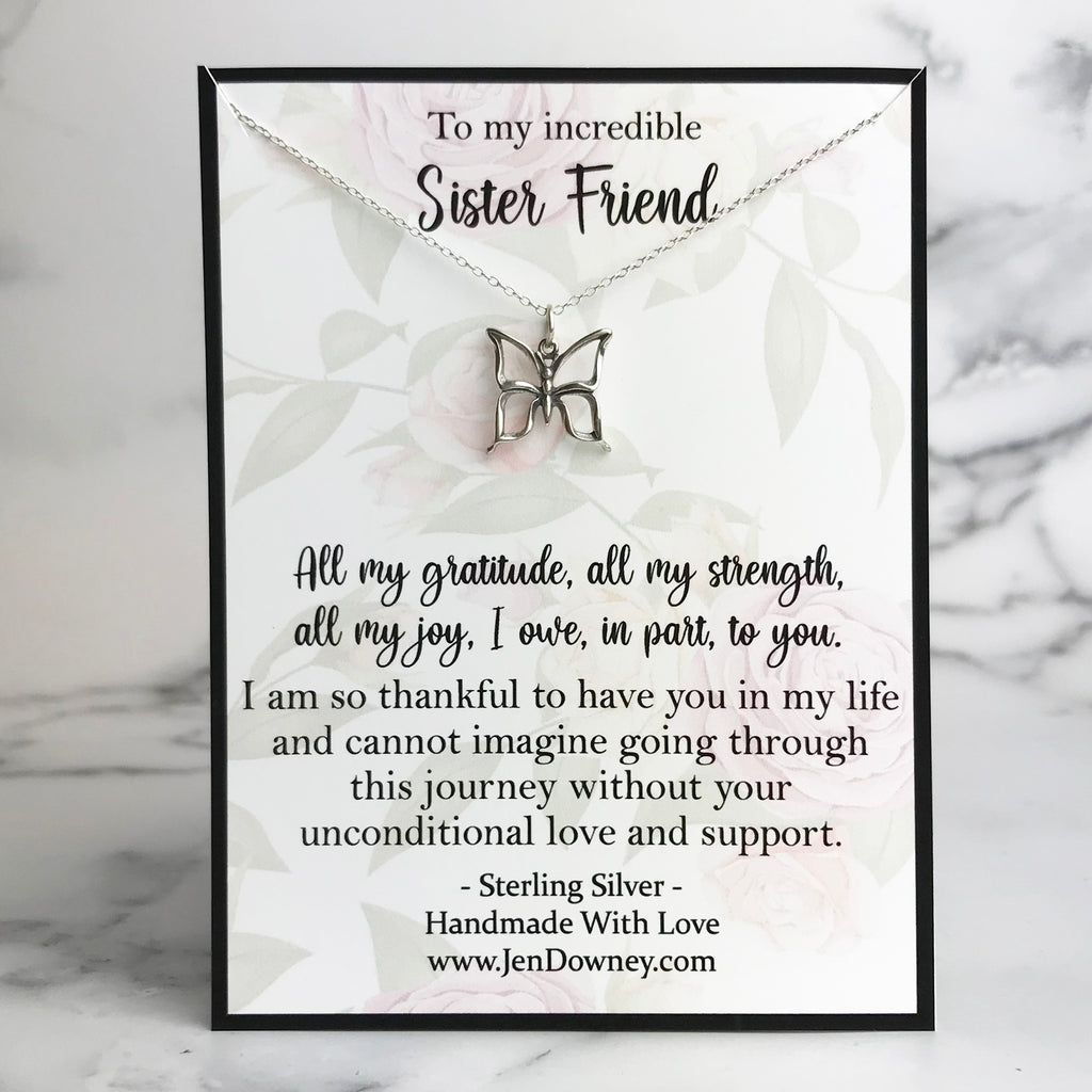 Sister Friend Quote Thankful For You Sterling Butterfly Necklace